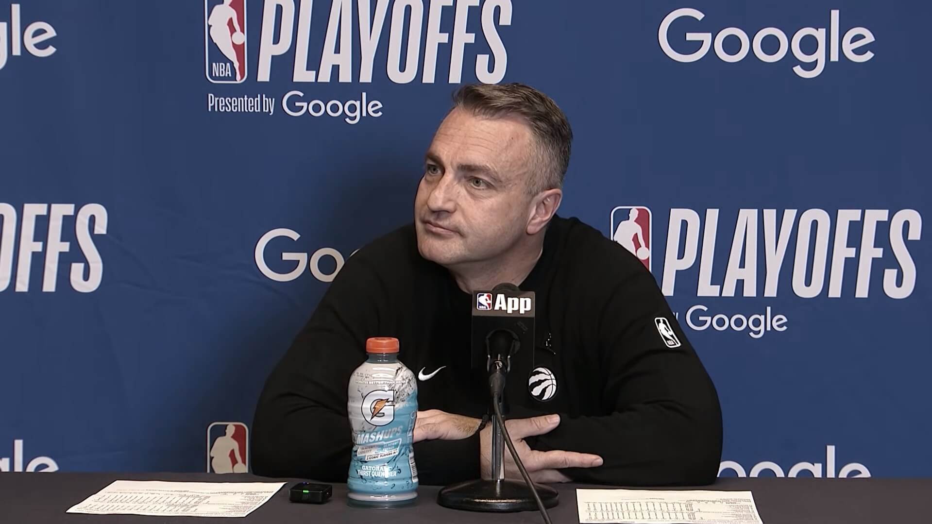 Novinari su odmah prešli na pitanja o prvom plej-of nastupu kanadske franšize nakon četiri godine, u kojem su Reptorsi poraženi rezultatom 126–113.